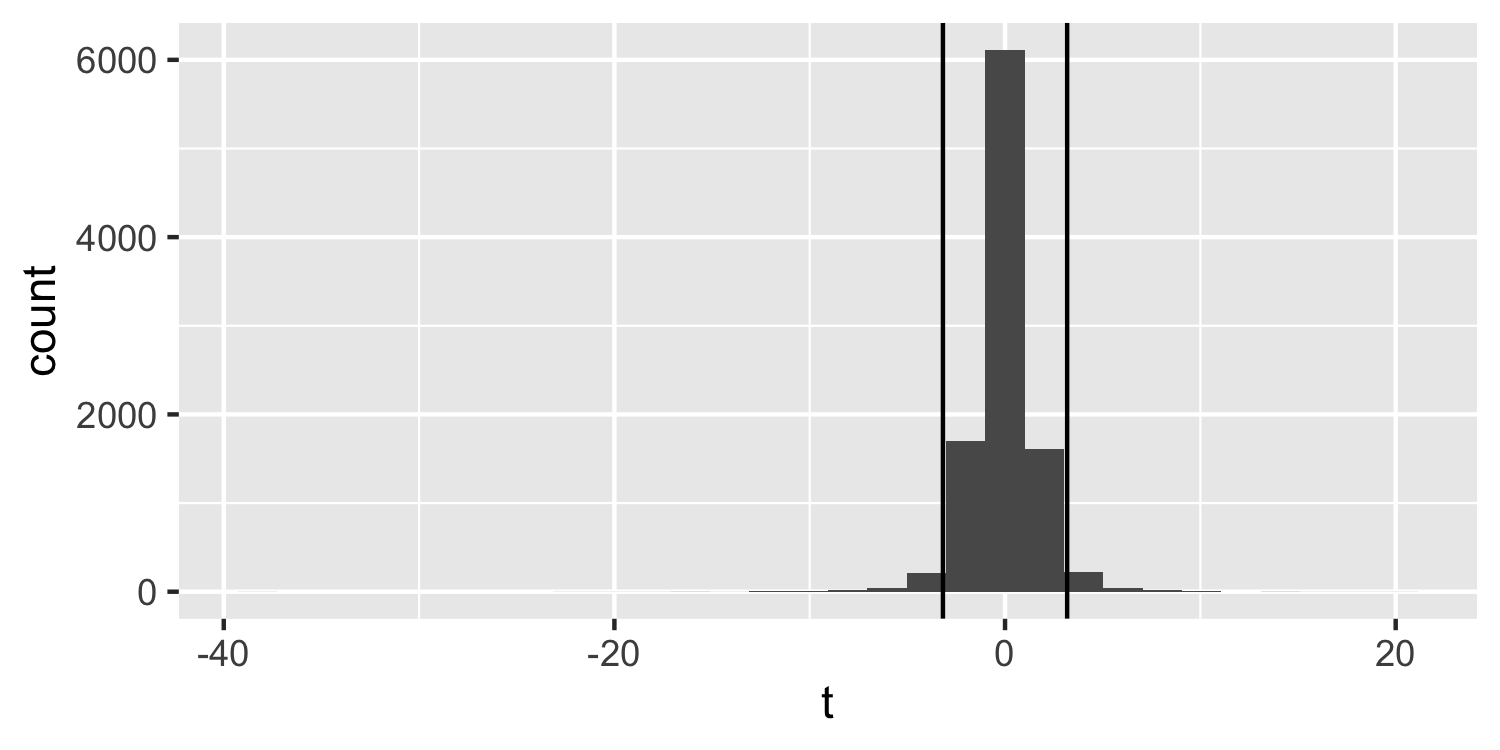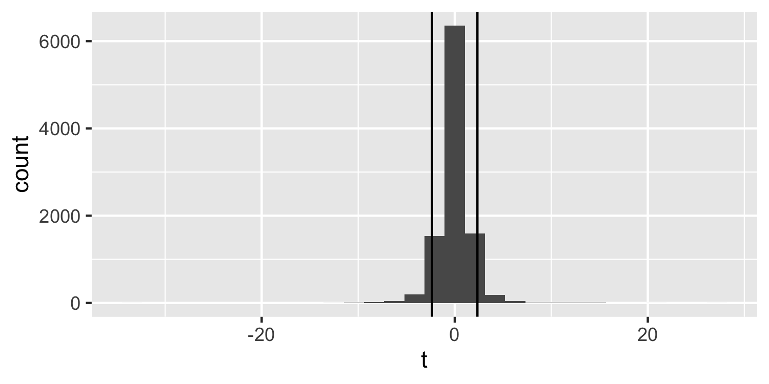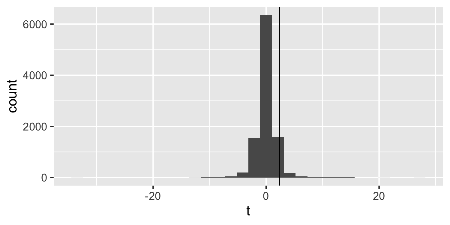 class: center, middle, inverse, title-slide # Confidence intervals for regression coefficients ### Dr. D’Agostino McGowan --- layout: true <div class="my-footer"> <span> Dr. Lucy D'Agostino McGowan </span> </div> --- class: middle # confidence intervals If we use the same sampling method to select different samples and computed an interval estimate for each sample, we would expect the true population parameter ( `\(\beta_1\)` ) to fall within the interval estimates 95% of the time. --- ## Confidence interval for `\(\hat\beta\)` .center[ `\(\Huge \hat\beta_i \pm t^∗ \times SE_{\hat\beta_i}\)` ] --- ## Confidence interval for `\(\hat\beta\)` .center[ `\(\Huge \hat\beta_i \pm t^∗ \times SE_{\hat\beta_i}\)` ] * `\(t^*\)` is the critical value for the `\(t_{n−p-1}\)` density curve to obtain the desired confidence level -- * Often we want a **95% confidence level**. --- ## Let's do it in R ```r X <- matrix(c(1, 1, 1, 1, 1, 2, 3, 5, 1, 3), ncol = 2) y <- c(1, 2, 5, 4, 2) ``` --- ## Let's do it in R ```r (beta_hat <- solve(t(X) %*% X) %*% t(X) %*% y) ``` ``` ## [,1] ## [1,] 1.5909091 ## [2,] 0.4318182 ``` --- ## Let's do it in R ```r e <- y - X %*% beta_hat var_e <- sum(e^2) / (5 - 2) var_beta <- var_e * solve(t(X) %*% X) (se_beta <- sqrt(diag(var_beta))) ``` ``` ## [1] 1.8249873 0.5890121 ``` --- ## Let's do it in R .center[ `\(\Huge \hat\beta_i \pm t^∗ \times SE_{\hat\beta_i}\)` ] ```r (t_star <- qt(0.975, 5 - 2)) ``` ``` ## [1] 3.182446 ``` -- .question[Why 0.975? I thought we want a 95% CI?] -- * We want a 2-sided p-value! --- ## t-distribution <!-- --> --- ## t-distribution <!-- --> --- ## t-distribution <!-- --> --- ## Let's do it in R .center[ `\(\Huge \hat\beta_i \pm t^∗ \times SE_{\hat\beta_i}\)` ] .small[ ```r (t_star <- qt(0.975, 5 - 2)) ``` ``` ## [1] 3.182446 ``` ```r (lb <- beta_hat - t_star * se_beta) ``` ``` ## [,1] ## [1,] -4.217015 ## [2,] -1.442681 ``` ```r (ub <- beta_hat + t_star * se_beta) ``` ``` ## [,1] ## [1,] 7.398833 ## [2,] 2.306318 ``` ] -- * 95% CI `\(\hat\beta_0\)`: (-4.22, 7.40) * 95% CI `\(\hat\beta_1\)`: (-1.44, 2.30) --- ## Let's do it in R ```r lm_fit <- lm(y ~ X[,2]) confint(lm_fit) ``` ``` ## 2.5 % 97.5 % ## (Intercept) -4.217015 7.398833 ## X[, 2] -1.442681 2.306318 ``` --- ## Confidence Regions You can also calculate a _confidence region_ for more than one parameter. `$$(\hat\beta-\beta)^T\mathbf{X}^T\mathbf{X}(\hat\beta-\beta)\leq (p+1)\hat\sigma^2F^{\alpha}_{p+1, n-(p+1)}$$` -- * This will form an _ellipsoid_ region --- ## <svg style="height:0.8em;top:.04em;position:relative;" viewBox="0 0 640 512"><path d="M512 64v256H128V64h384m16-64H112C85.5 0 64 21.5 64 48v288c0 26.5 21.5 48 48 48h416c26.5 0 48-21.5 48-48V48c0-26.5-21.5-48-48-48zm100 416H389.5c-3 0-5.5 2.1-5.9 5.1C381.2 436.3 368 448 352 448h-64c-16 0-29.2-11.7-31.6-26.9-.5-2.9-3-5.1-5.9-5.1H12c-6.6 0-12 5.4-12 12v36c0 26.5 21.5 48 48 48h544c26.5 0 48-21.5 48-48v-36c0-6.6-5.4-12-12-12z"/></svg> `Application Exercise` y | x_1 | x_2 ---|----|---- 1 | 3 | 2 3 | 3 | 6 5 | 1 | 8 6 | 7 | 9 1 | 1 | 2 * Fit a model predicting `y` from `X` * Calculate the confidence intervals "by hand" * Check with the `confint` function * Interpret these intervals * Calculate the _joint_ confidence interval for `\(\beta_1\)` and `\(\beta_2\)`